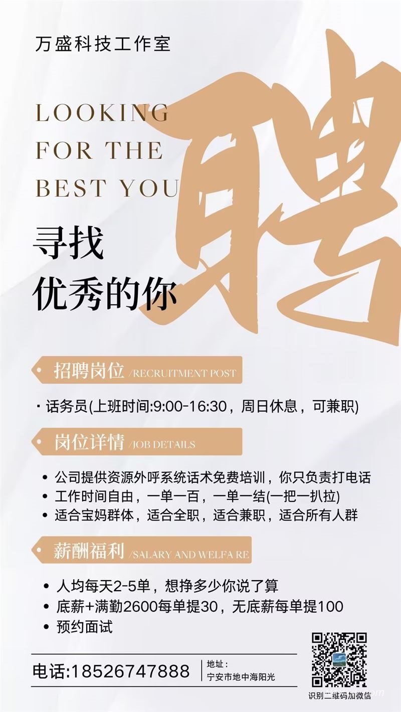 提示:联系我时,请说明在宁安信息网看到的,谢谢!